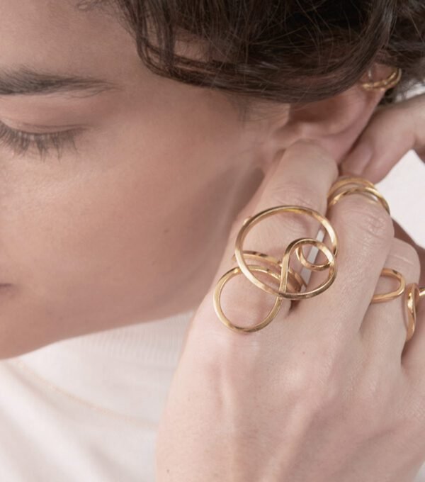 Anillo infinito mediano de bronce con baño de oro de 24k, es ajustable y fabricado a mano. Lo hacemos a tu talla